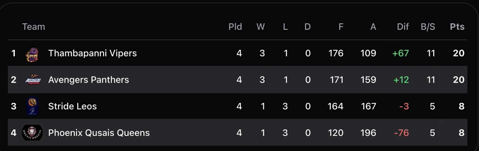 The end of Day 3 saw the Freestylers and Challengers leading the standings with 38 points each, with the Dynamos and Lions just a few points back and each having a game in hand. The top two sides get automatic qualification into the semi-finals.